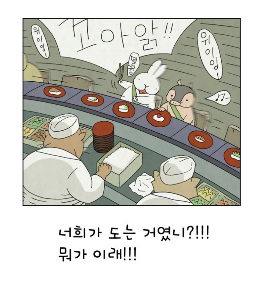 회전 초밥집을 동물 버전으로 흉내 낸 것인데..